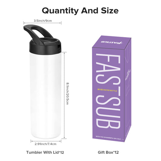 20 oz Sublimation Sports Water Bottle | 12 Pack
