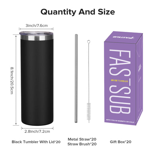 20 oz Powder Coated Skinny Tumbler - Black | 20 Pack