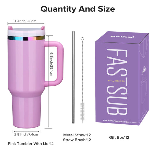 40 oz Rainbow Plated Tumbler - Pink | 12 Pack