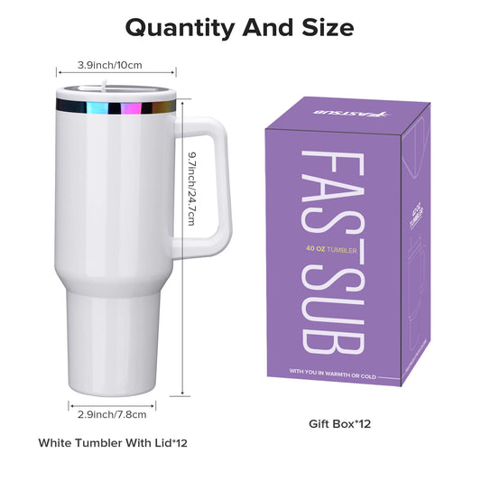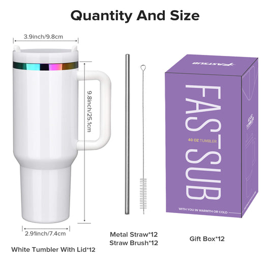 40 oz Rainbow Plated Tumbler - White | 12 Pack