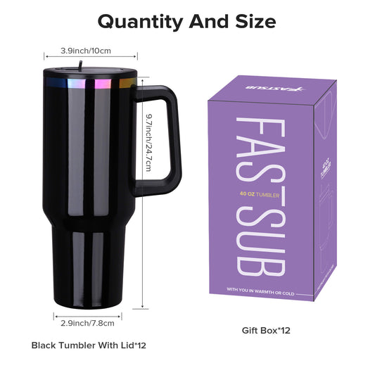 40 oz Rainbow Plated Tumbler with Flip Straw - Black | 12 Pack