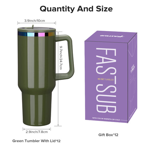 40 oz Rainbow Plated Tumbler with Flip Straw - Green | 12 Pack