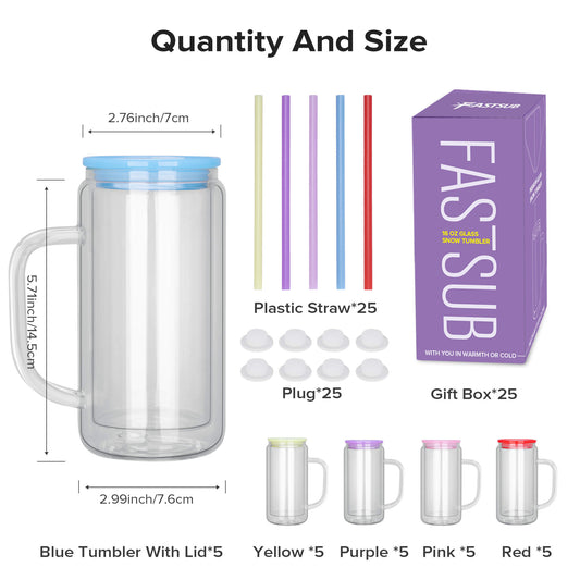 16 oz Snow Globe Glass Tumbler with Handle | 25 Pack