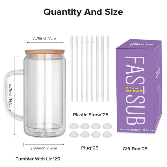 16 oz Sublimation Snow Globe Glass Tumbler | 25 Pack