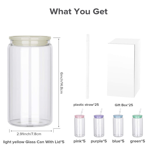 16 oz Color Sublimation Glass Cup - Plastic Lid | 25 Pack
