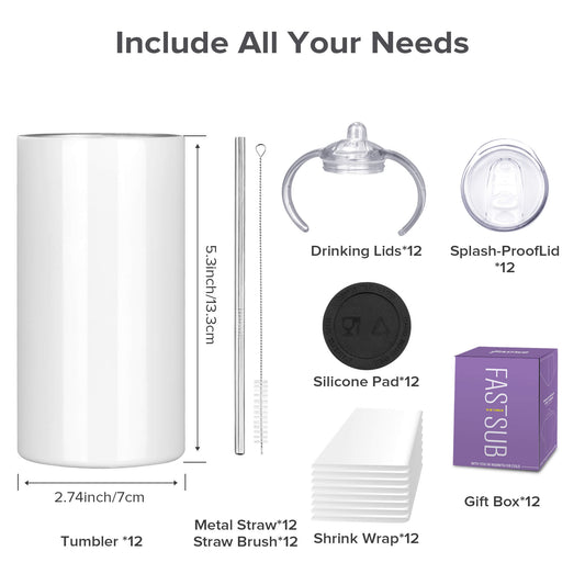 12 oz Sublimation Sippy Cup - 2 Lids | 30 Pack