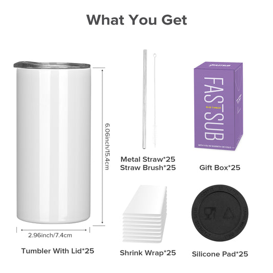 15 oz Skinny Sublimation Tumbler | 25 Pack