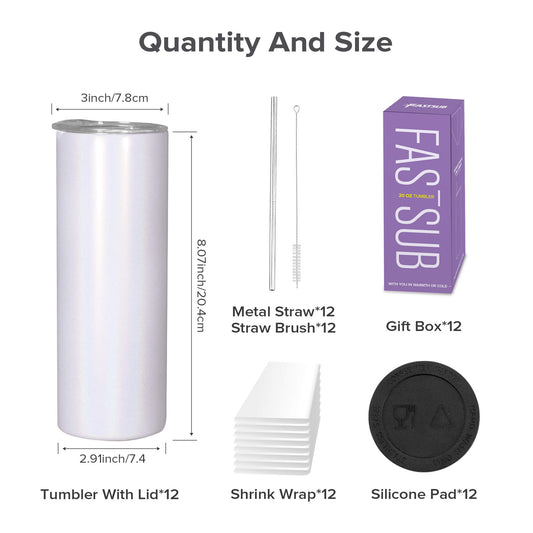 20 oz Flat Edge Skinny Sublimation Tumbler | 25 Pack