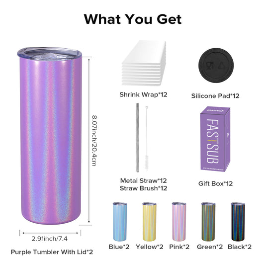 20 oz Holographic Skinny Sublimation Tumbler | 12 Pack