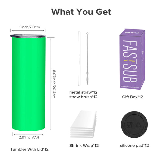 20 oz Glow In The Dark Skinny Sublimation Tumbler | 12 Pack