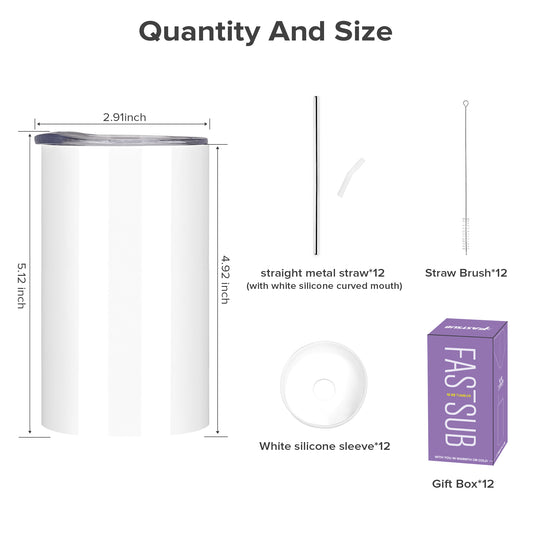 12 oz Flat Edge Sublimation Tumbler | 12 Pack