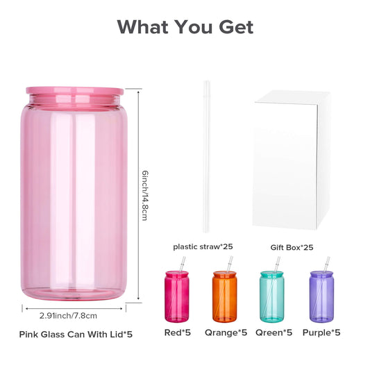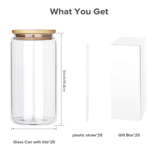 • glass can with lid and straw wholesale, 16oz Clear Glass Tumbler Sublimation | 25 Pack - FASTSUB